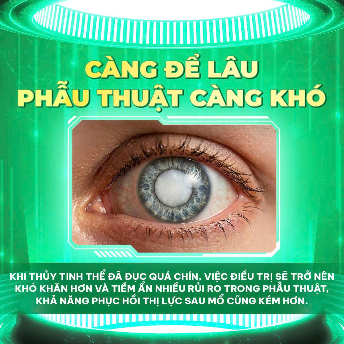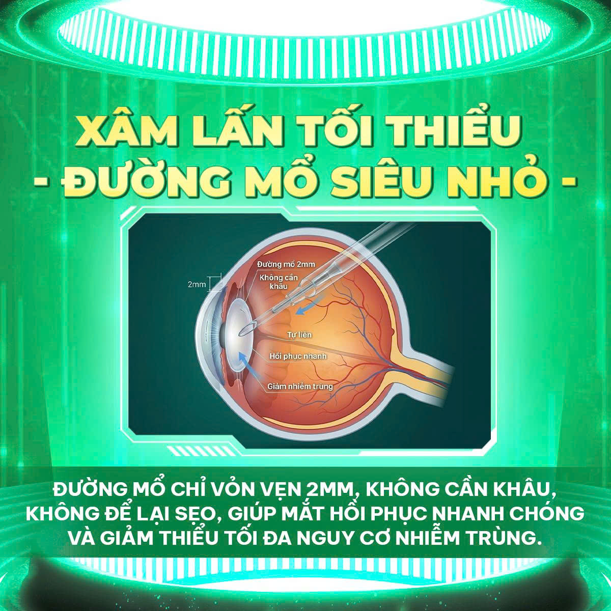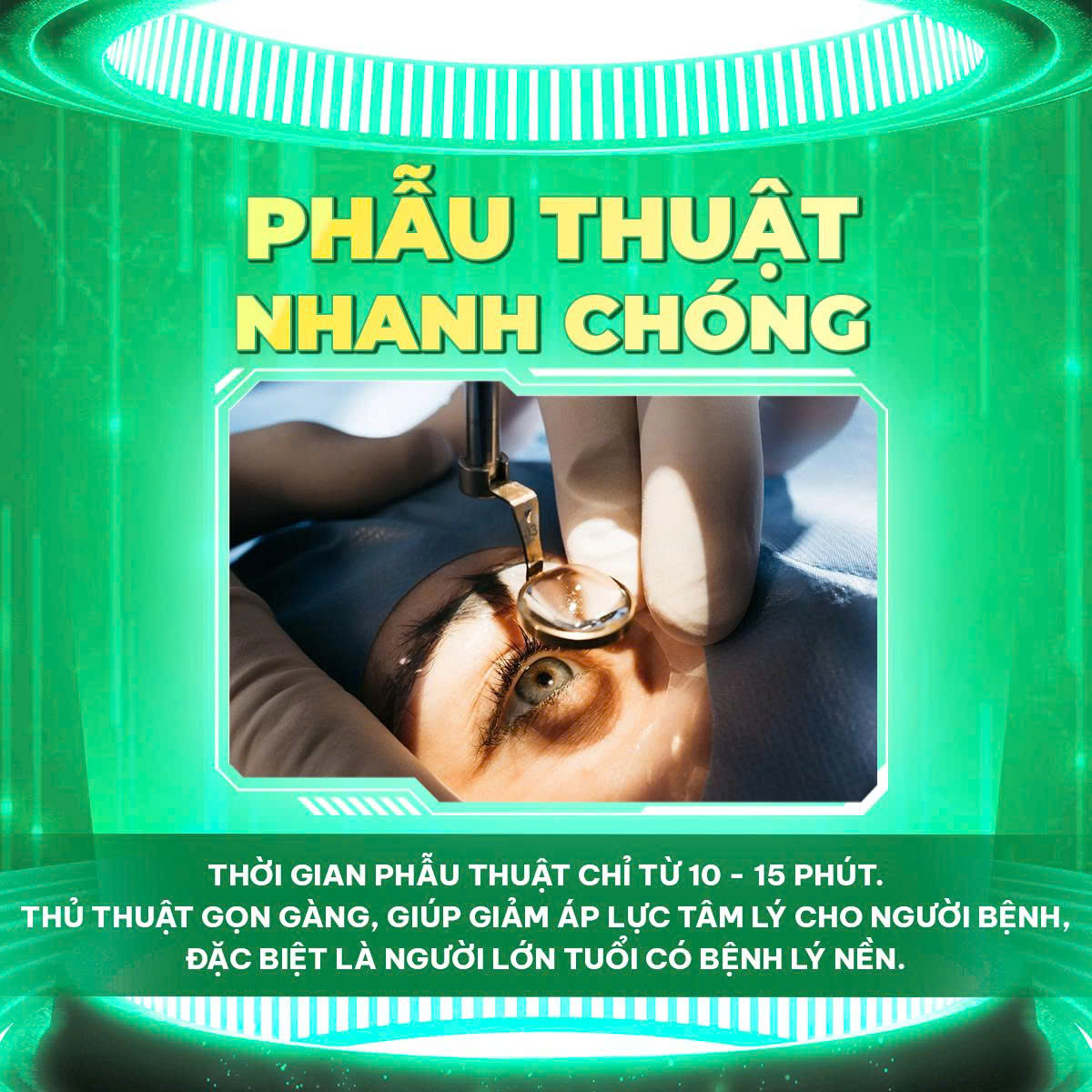 Công nghệ điều trị đục thủy tinh thể tiên tiến nhất hiện nay, sử dụng năng lượng sóng siêu âm để tán nhuyễn và hút bỏ thủy tinh thể bị đục, sau đó thay thế bằng một thấu kính nhân tạo phù hợp.
